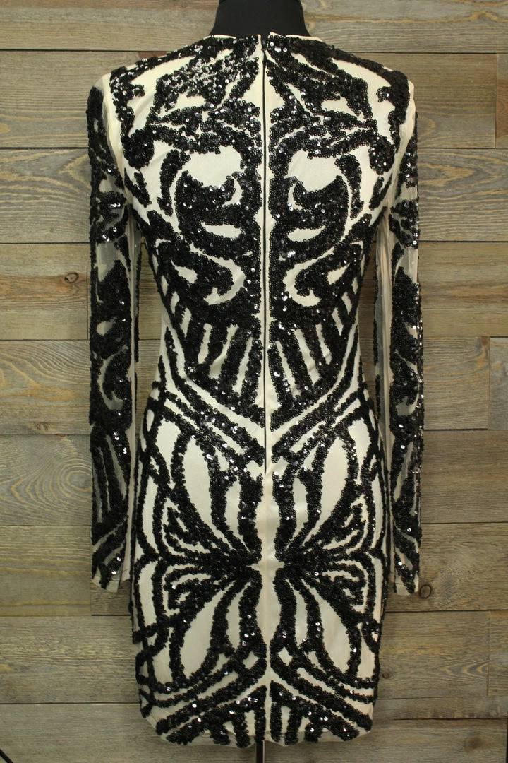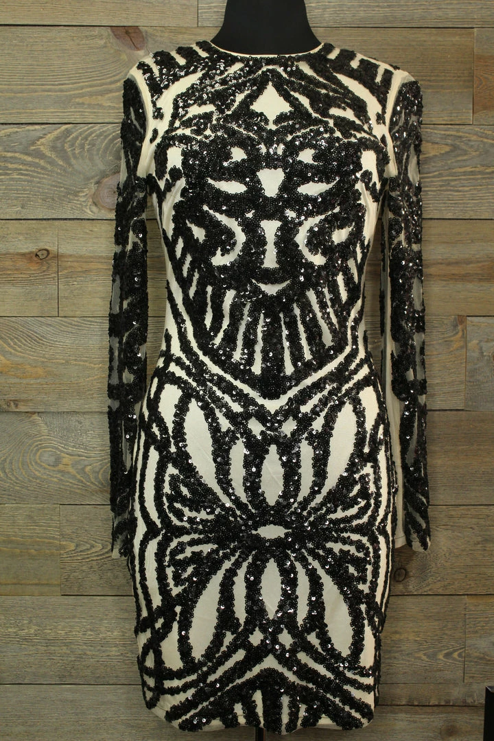 Bebe TIFFIANY’S CLOSET Ivory Colored Dress With Black Sequin Design