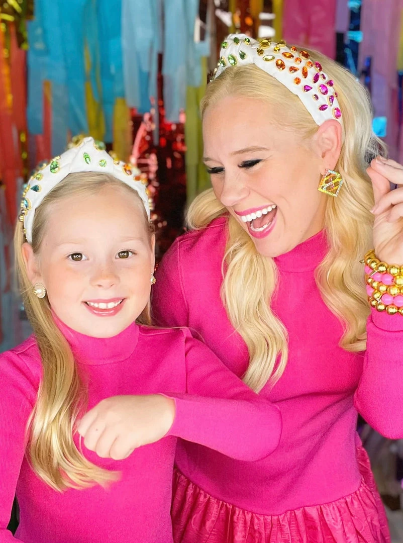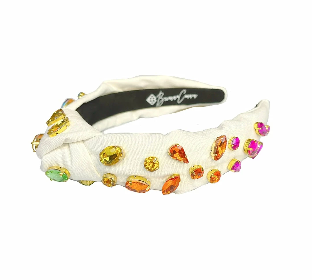 Brianna Cannon Ivory Headband With Rainbow Gradient Hand-Sewn Crystals (Mommy + Me Option) Hats/Headbands/Scarves/Gloves