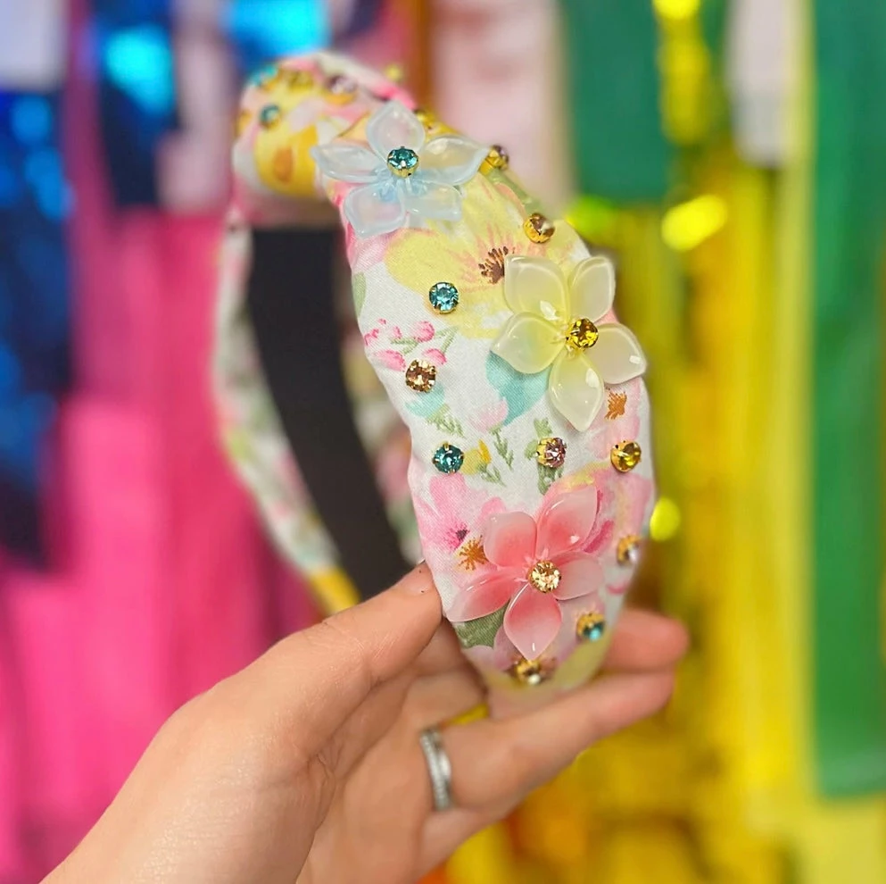 Brianna Cannon New Arrivals Spring Floral Headband With Beaded Flowers And Crystals