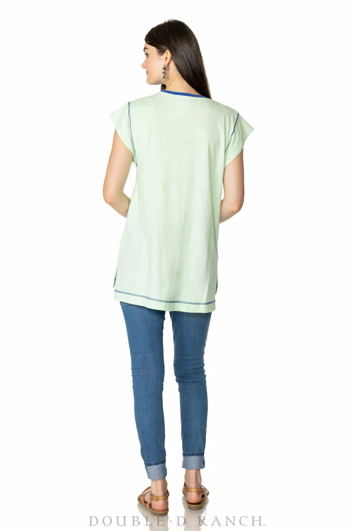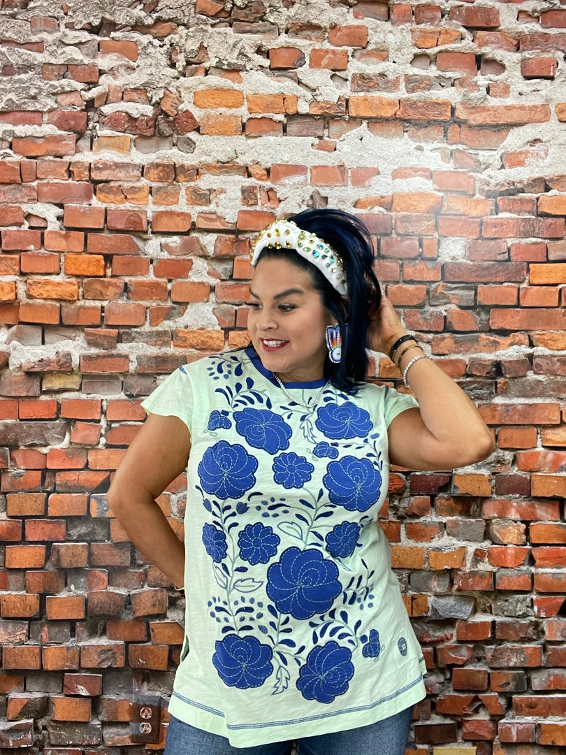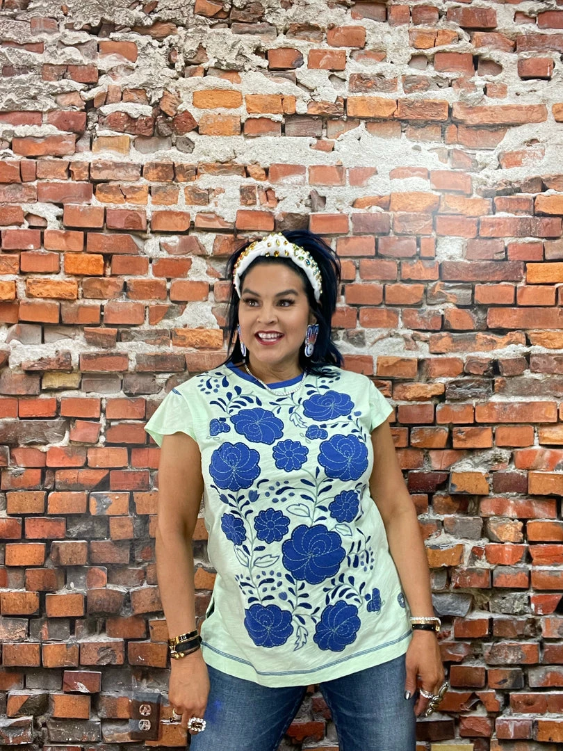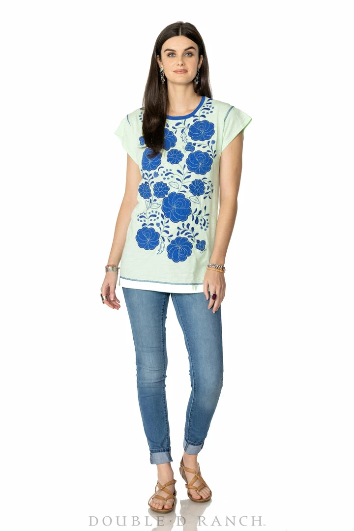 This cute, colorful cotton top is anything but average. It’s got a slightly longer silhouette (perfect for pairing with leggings and skinnies) with a crew neck and chic cap sleeves. But what is really turning heads and stealing hearts are the vibrant hues and oversized folk art florals in strong combinations of colors. You’re going to want all three!