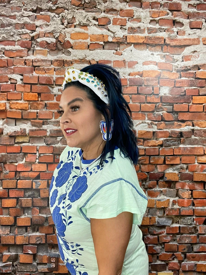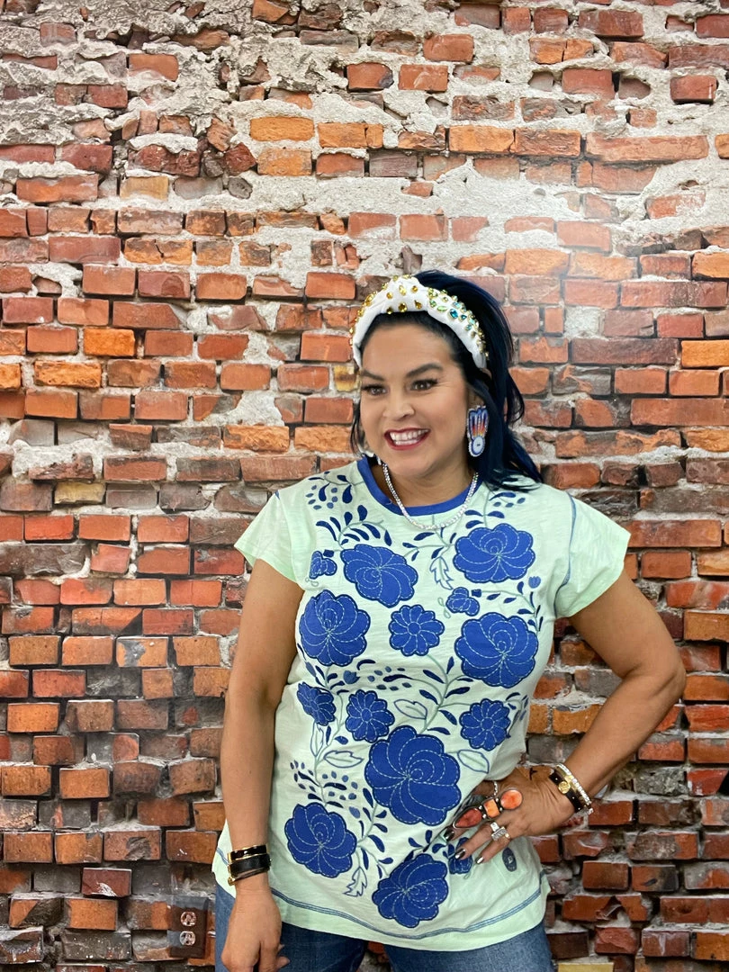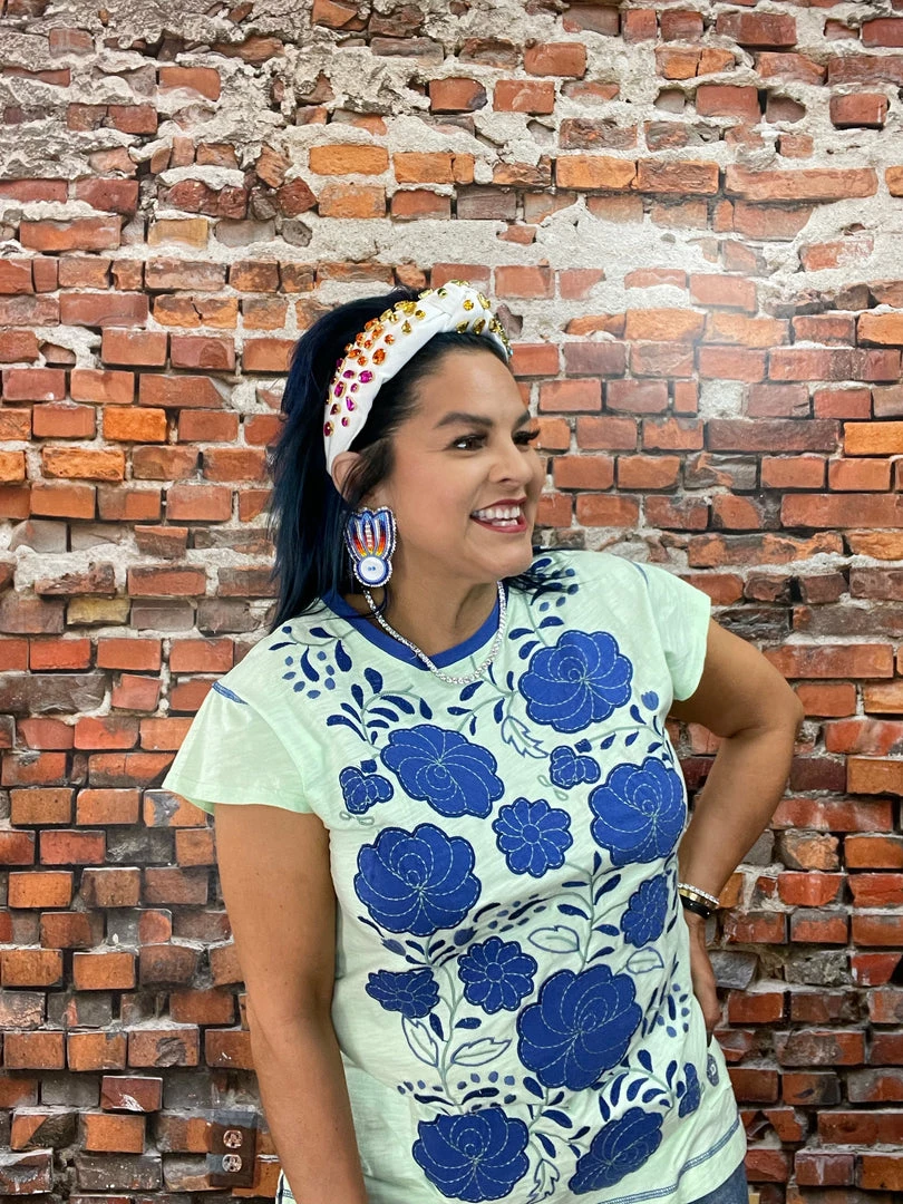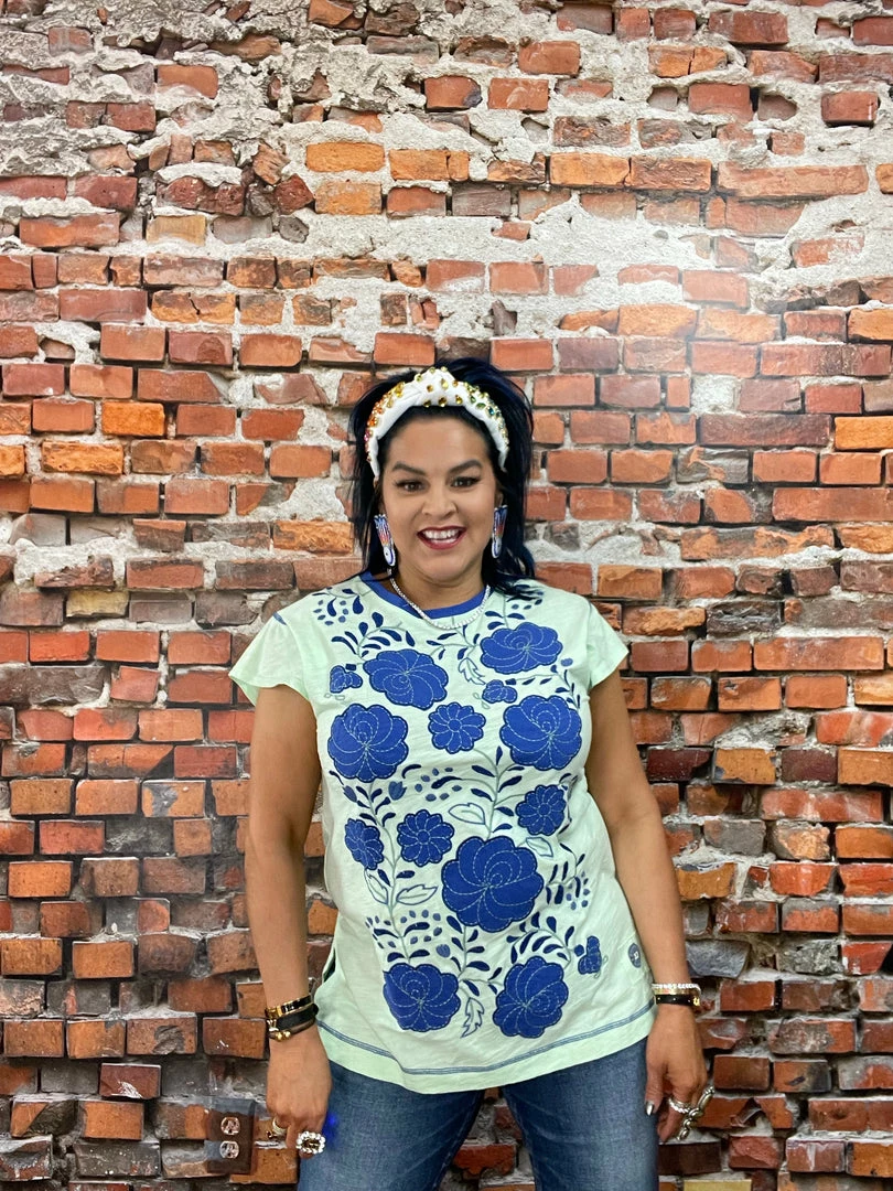 This cute, colorful cotton top is anything but average. It’s got a slightly longer silhouette (perfect for pairing with leggings and skinnies) with a crew neck and chic cap sleeves. But what is really turning heads and stealing hearts are the vibrant hues and oversized folk art florals in strong combinations of colors. You’re going to want all three!