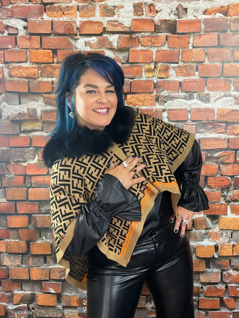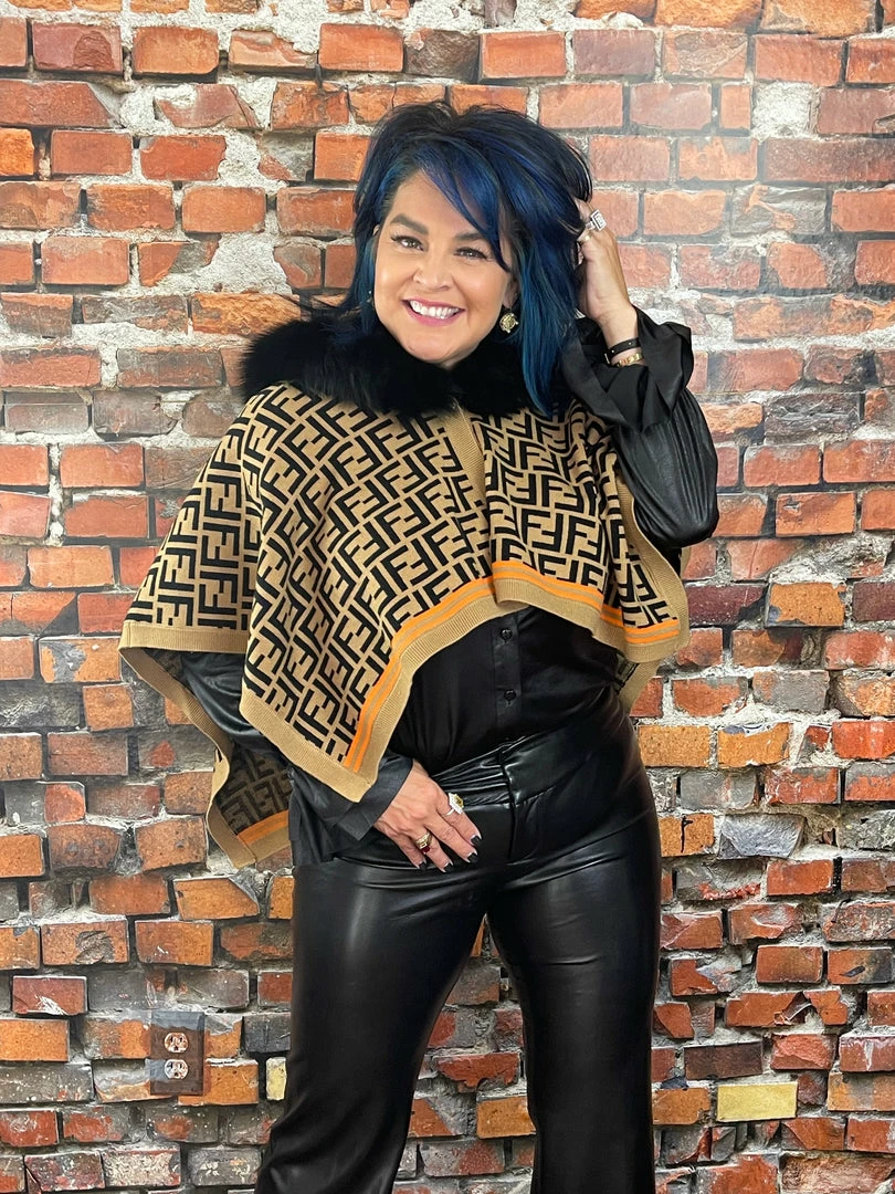 Oo La La Letter Pattern Short Cape With Fox Collar New Arrivals
