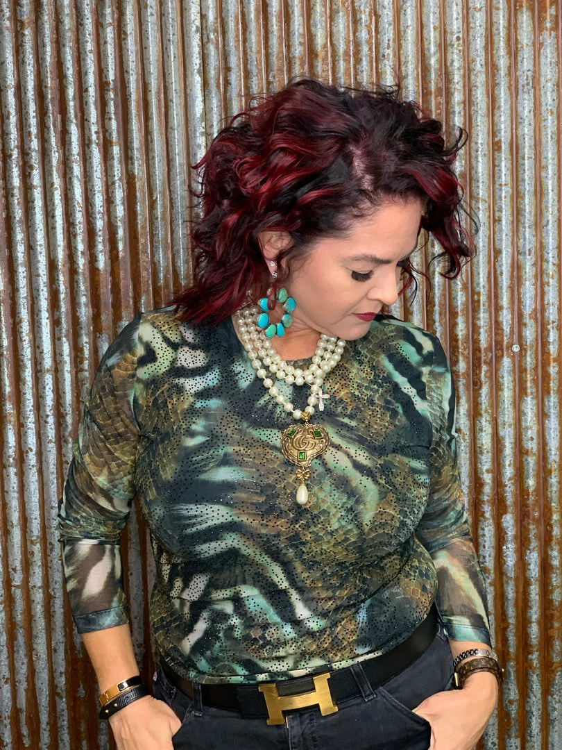 Let your wild side show in this cool, mesh, animal print top. Great for casual or a night out.
