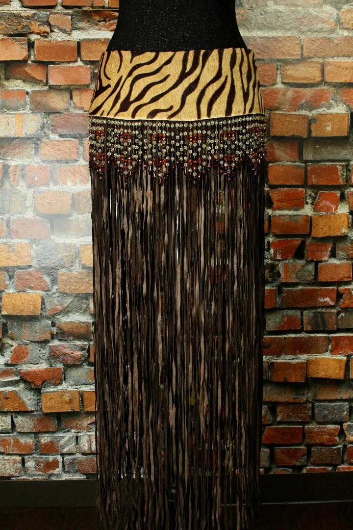 - 5″ Hair hide band with real leather fringe & cut beads