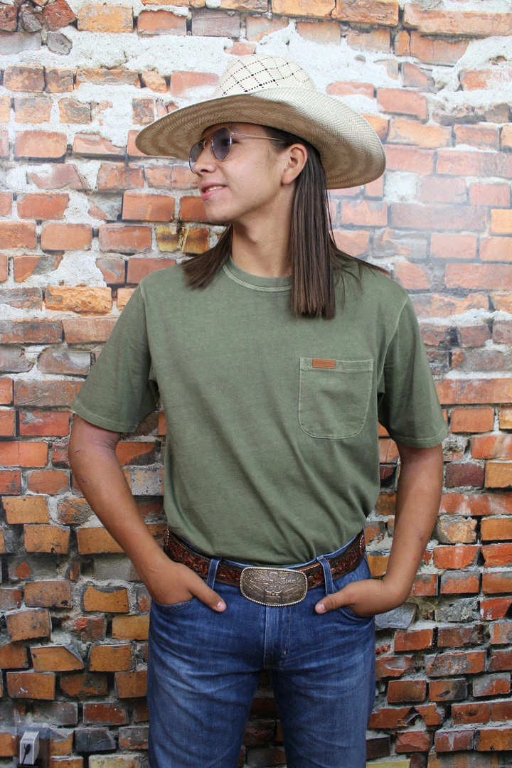 Pendleton’s famous men’s t-shirt of premium combed cotton in a hardy jersey knit. A reinforced pocket and double-needle stitching add staying power. Label-free neck.