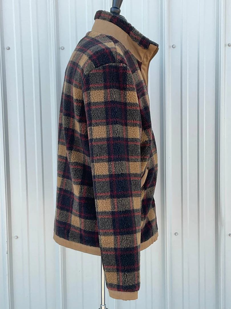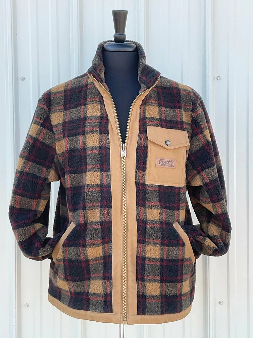Warm Bereber fleece jacket with Big Sky Canvas trim. Zip front, two angled welt front pockets, one snap chest pocket, one interior pocket.
