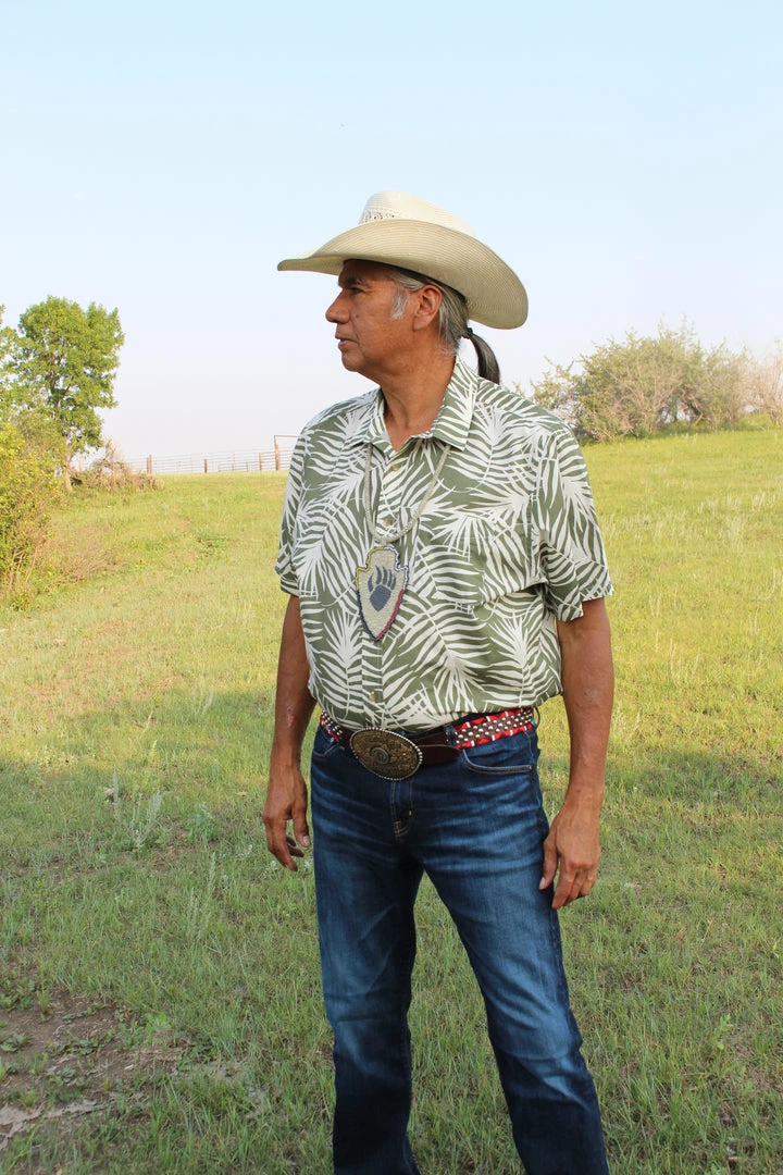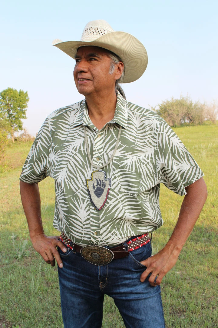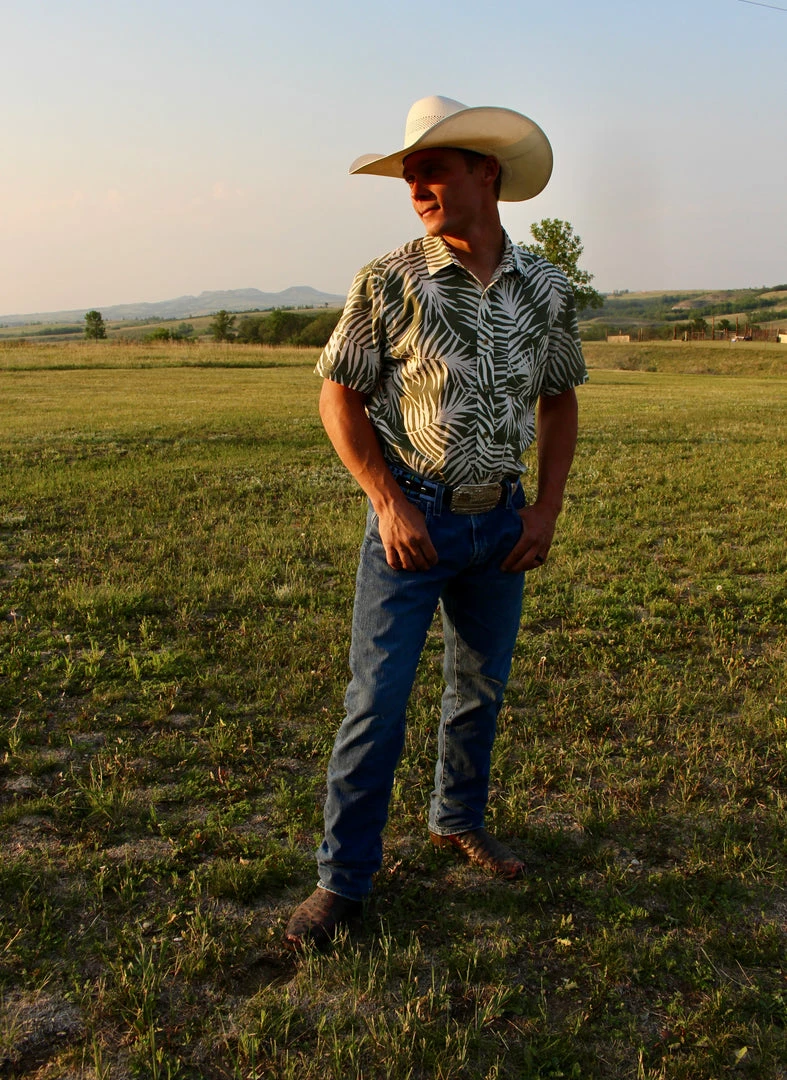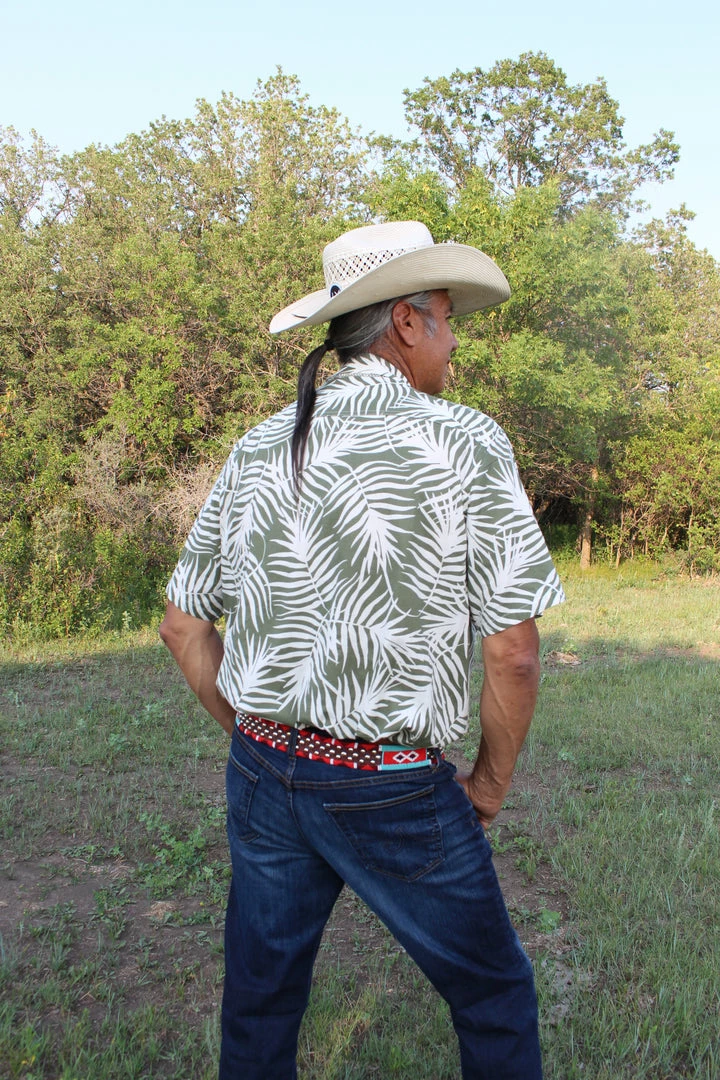 Men’s ultralight cotton shirt in a vintage-inspired leaf print. Features one chest pocket and a shirttail hem.