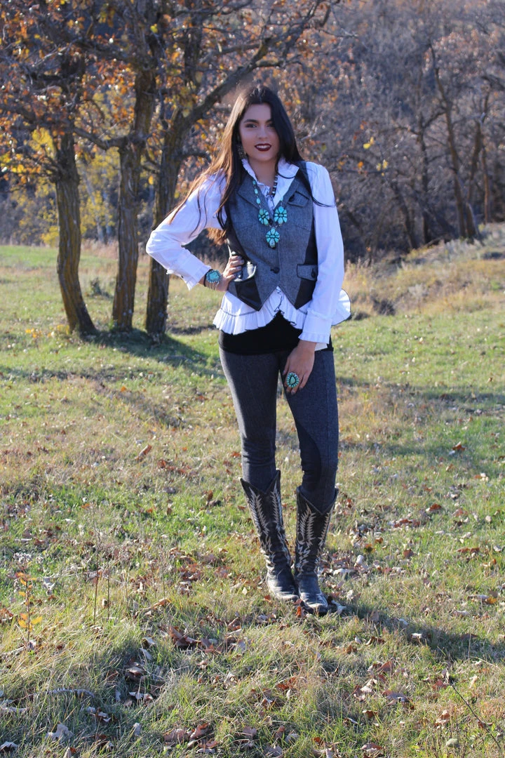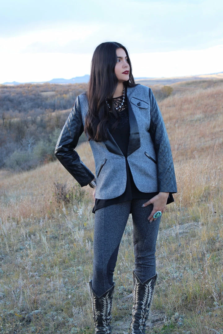 Herringbone Equestrian style leggings, faux suede trim. Pull on.