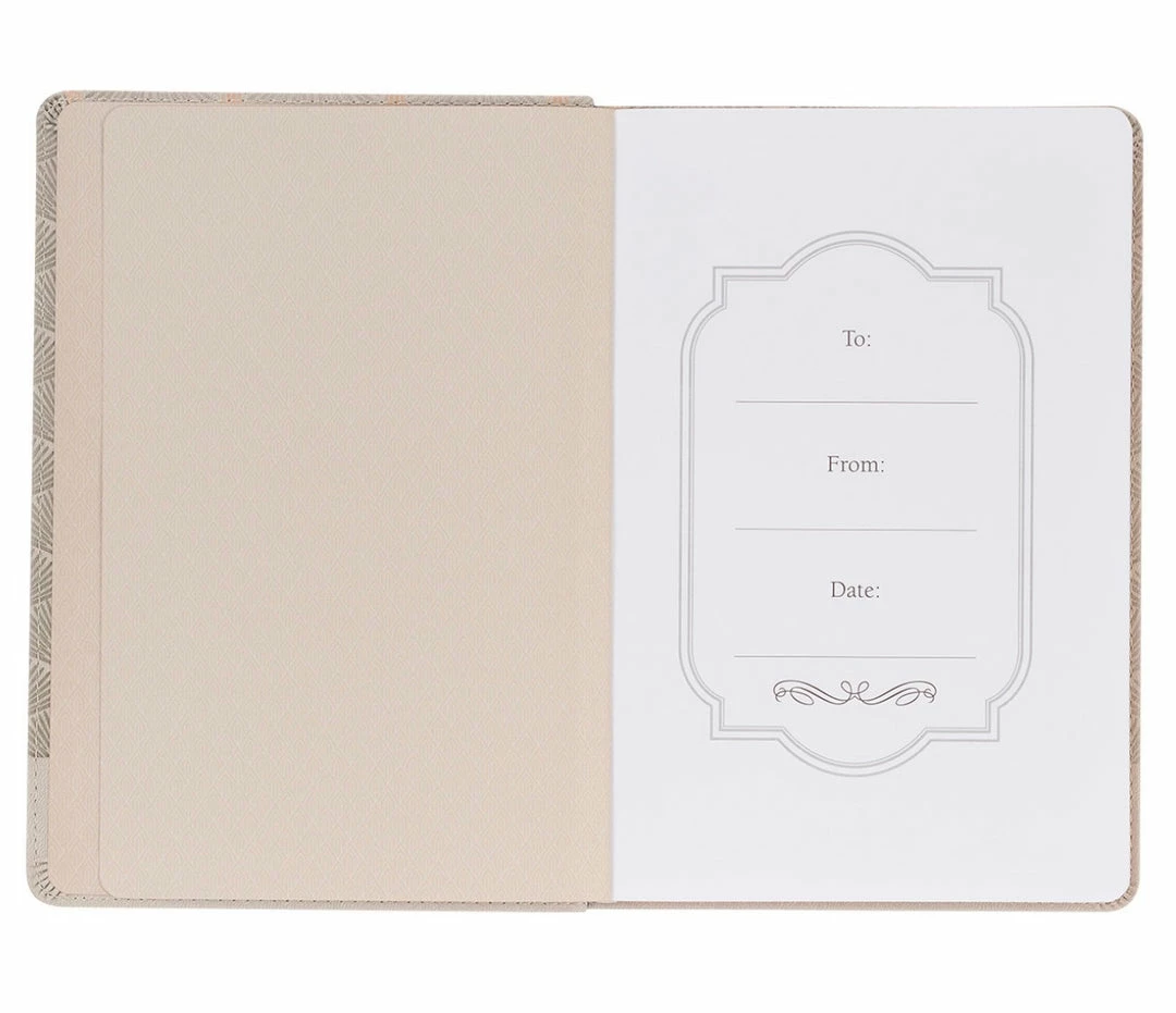 Record your dreams and thoughts within the 336 lined pages of this journal and be inspired as you meditate on the Scripture at the bottom of each page. The paper is weighted to minimize ink bleeding, and you can easily mark your spot with the coordinating satin ribbon. Use the presentation page at the front to address the journal and include a personal note when you give it on a special occasion.