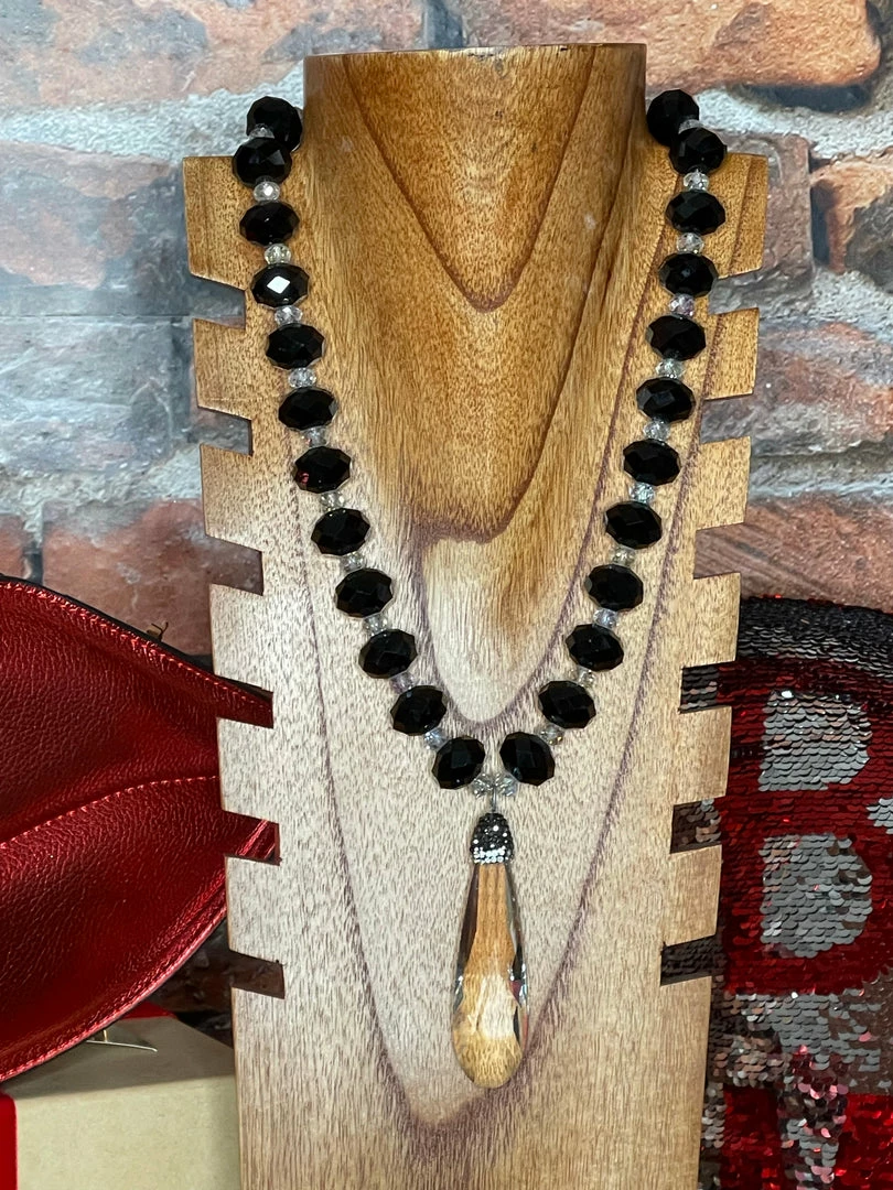 The Sparkling Spur Jewelry Clear Crystal Drop W/Black And Clear Cut Beads