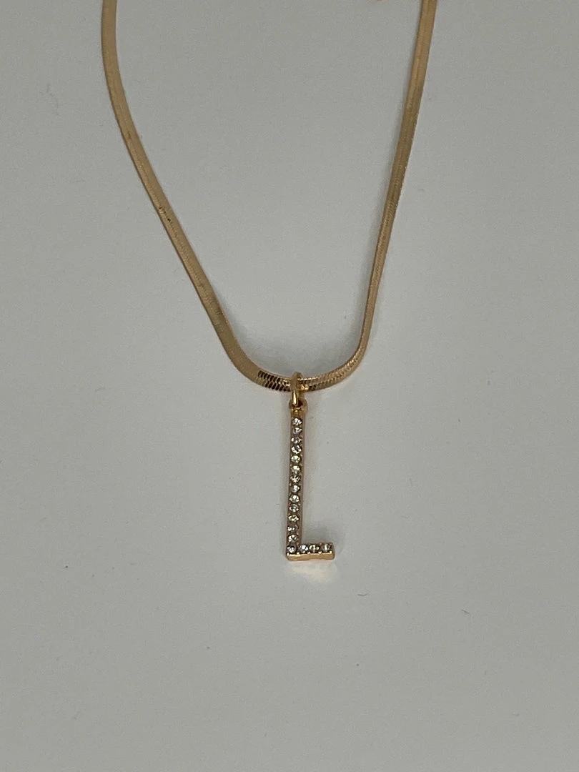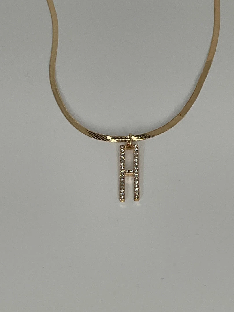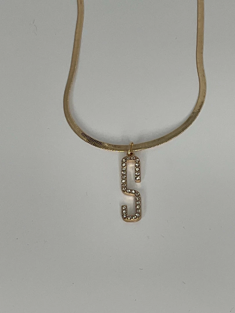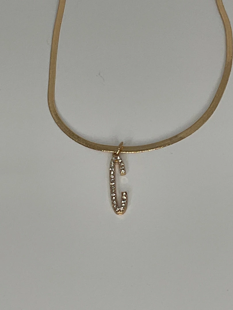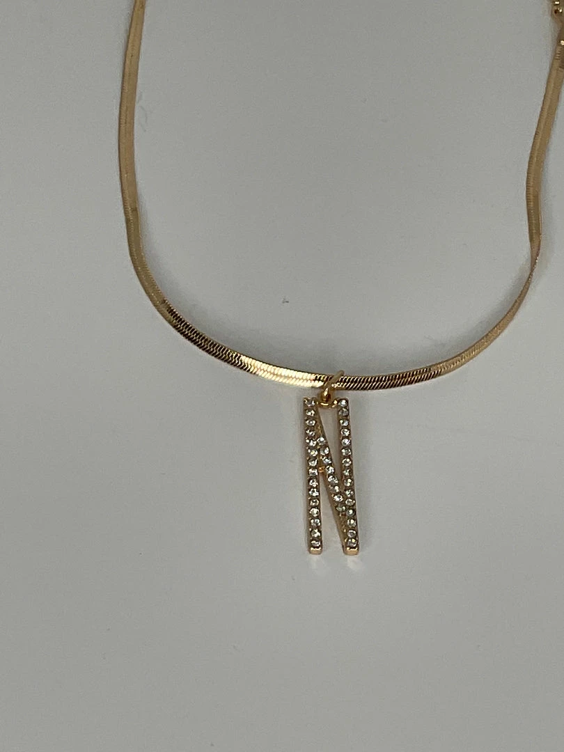 The Sparkling Spur Jewelry Rhinestone Initial On Snake Chain Necklace (Variety)