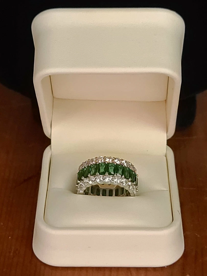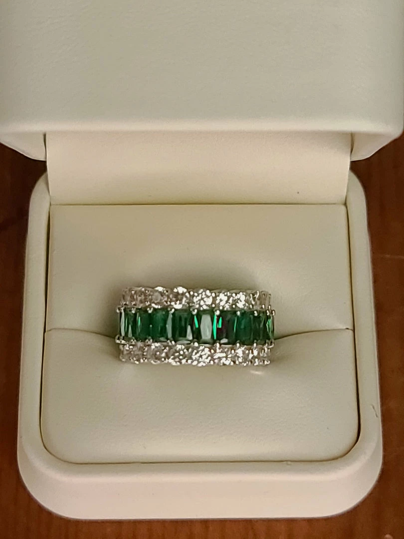 The Sparkling Spur Lab Emerald Wide & Diamond Moissanite Band New Arrivals