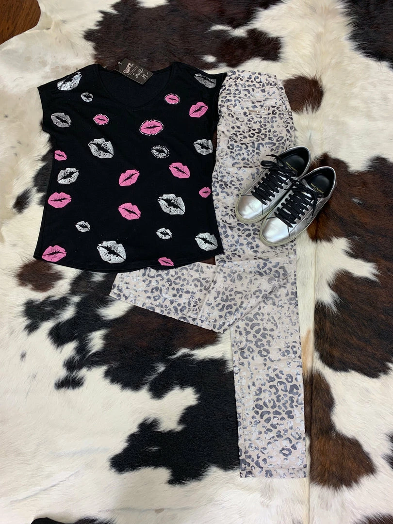 When you are feeling a little catty!!! Flattering fit on these leopard pants with hints of silver metallic shimmer.