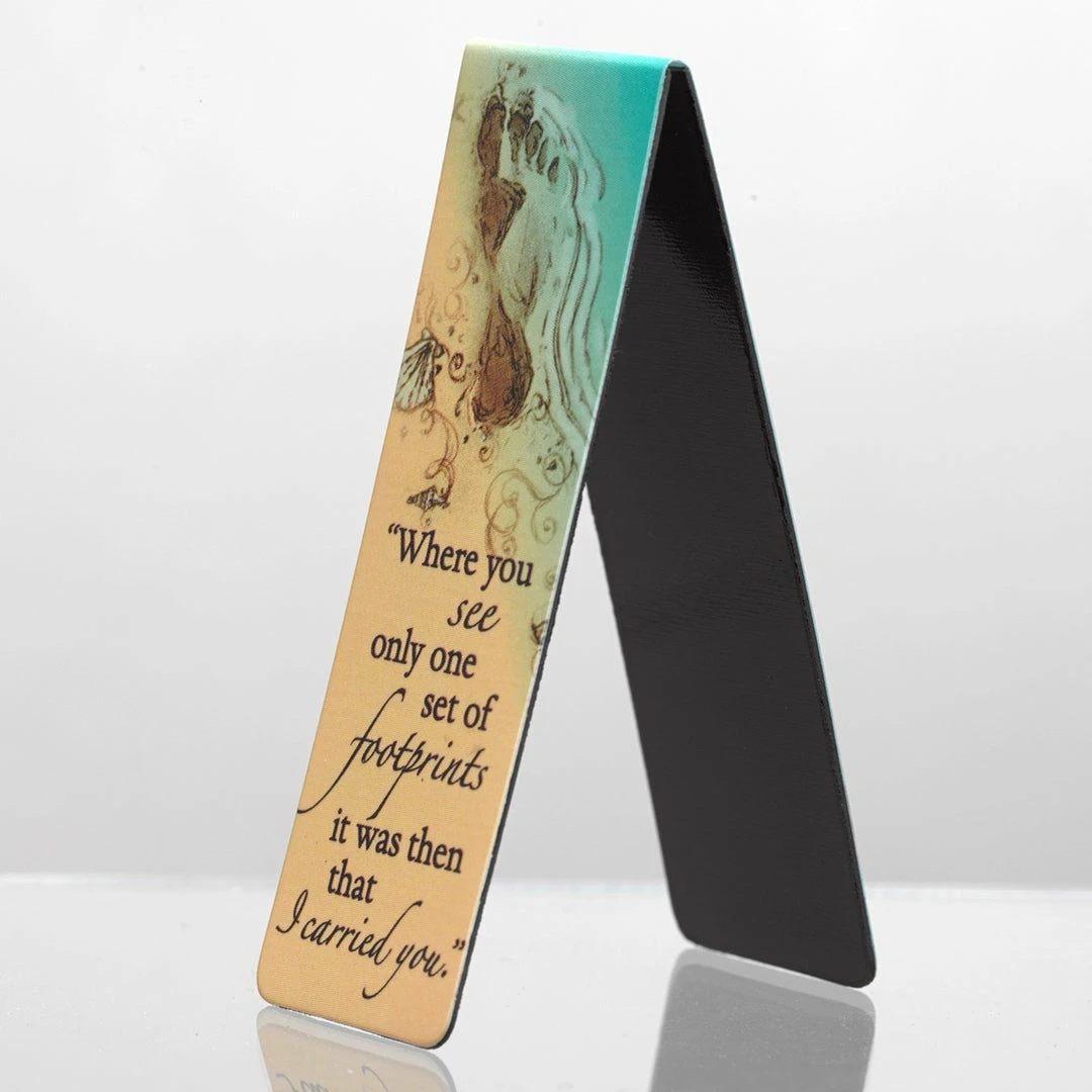 Each magnetic bookmark features a serene and relaxing scene, from an eagle flying in a blue sky and a sunset view on the water, to a fall day and footprints in the sand. These scenes are continued on the back of the magnets. Choose whichever scenic magnet puts your mind at ease, and use the Christian bookmark to mark your spot.