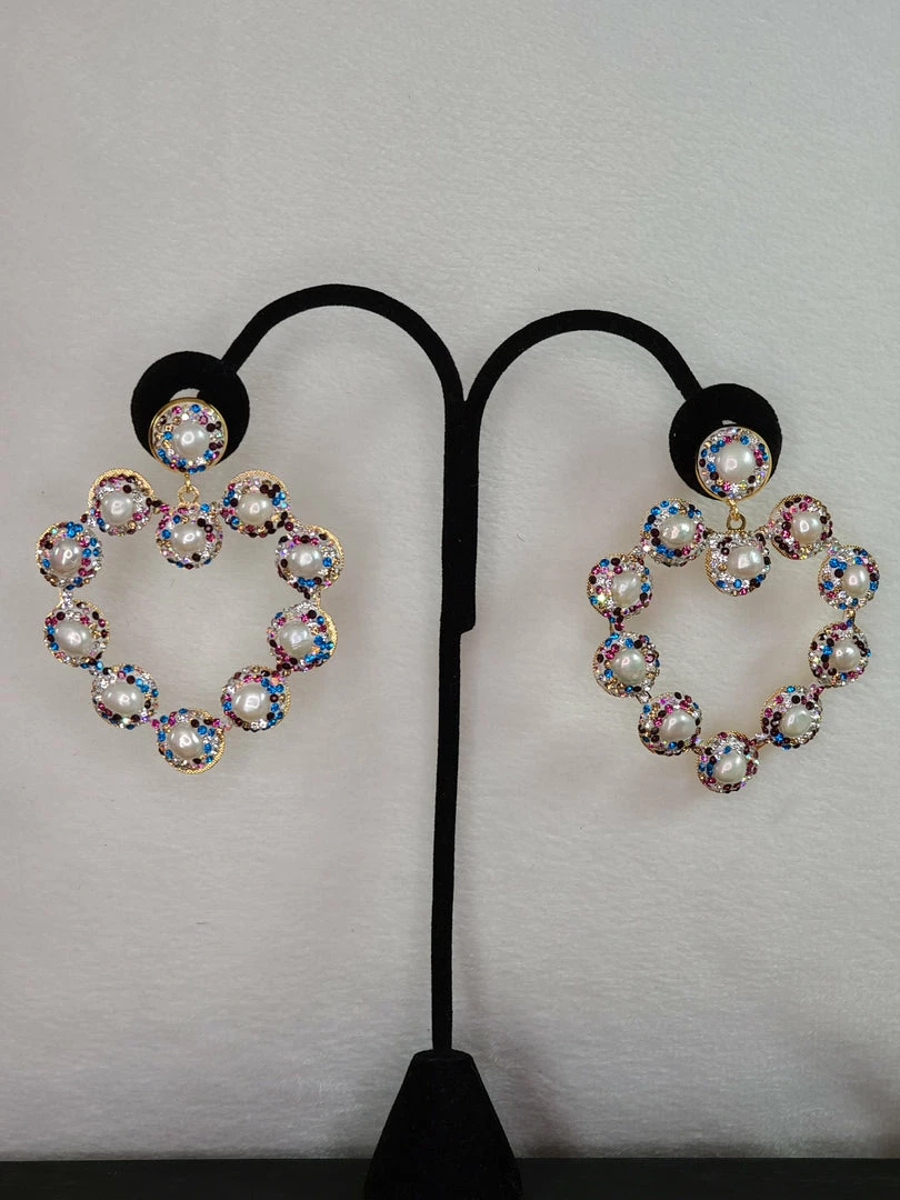 Who wouldn’t want a pair of these beautiful heart shaped earrings? Pearls surrounded by tiny shimmering colored stones that are guarenteed to get some attention! Â