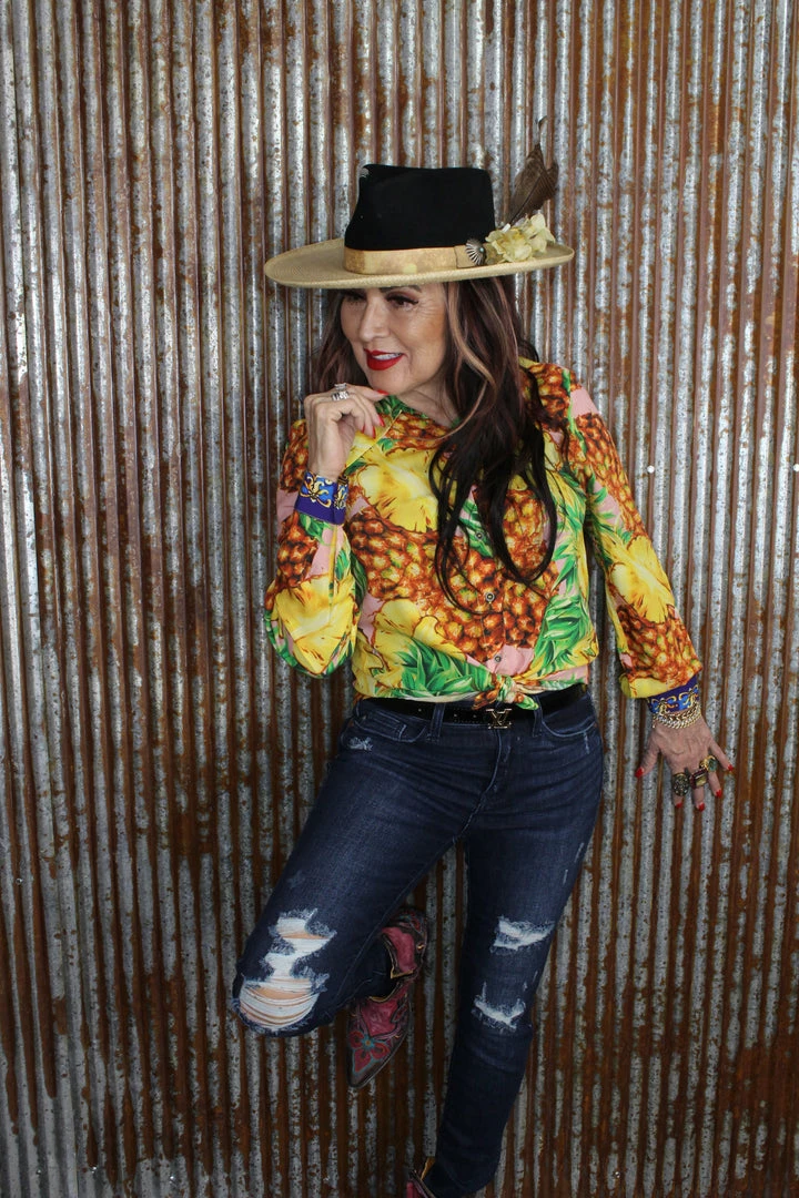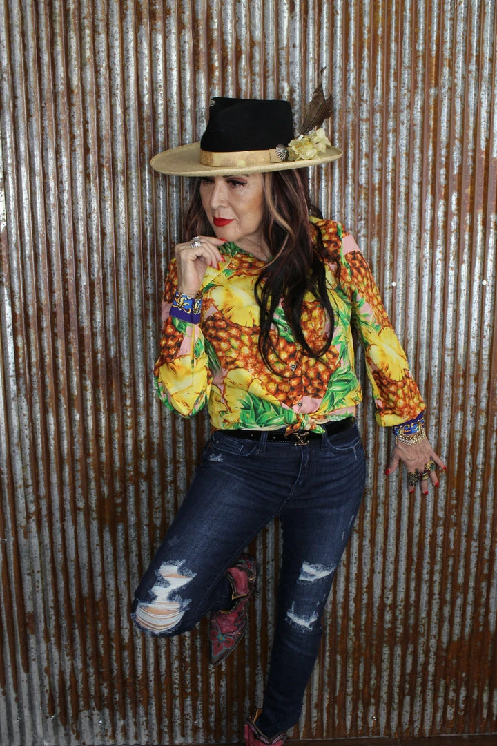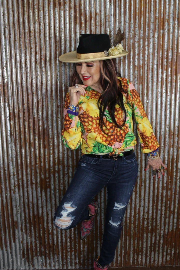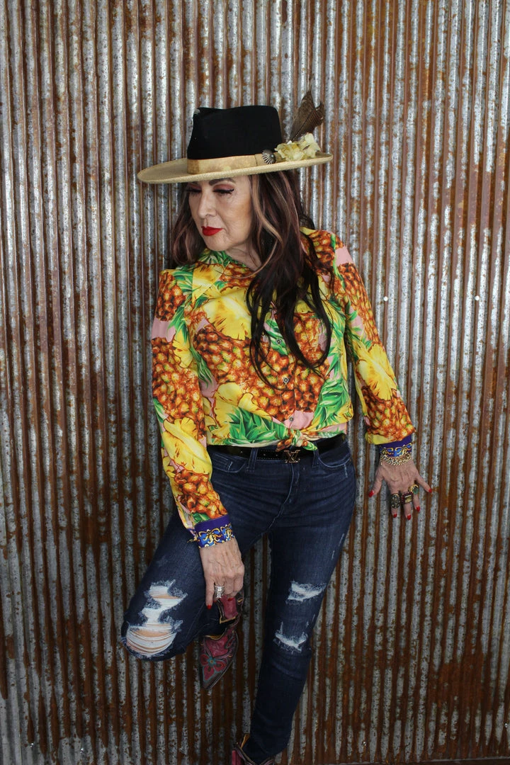 Sometimes you just need a reason to smile and this shirt will definitely have you smiling! Â Fun pattern on the cuff!